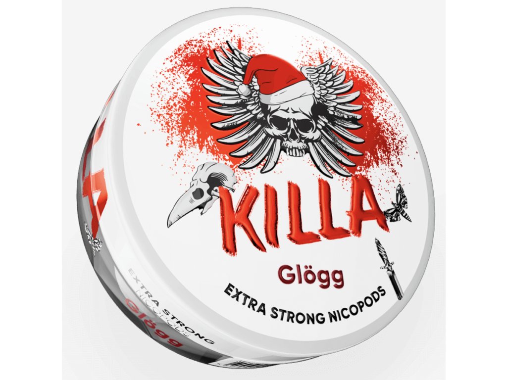 Killa Glogg Extra Strong je intenzívne nikotínové vrecúško inšpirované švédskym vianočným nápojom "glögg" – teda vareným vínom s korením. Spája sladko korenenú, hrejivú chuť s veľmi silnou dávkou nikotínu, takže nie je vhodné pre začiatočníkov.