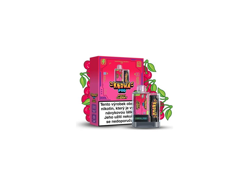 Kurwa Pod Fizzy Cherry prináša osviežujúcu a perlivú chuť zrelých čerešní s príjemným perlivým (fizzy) efektom. Ideálne pre tých, ktorí hľadajú zábavný a osviežujúci vapovací zážitok z radu Kurwa Pod.
