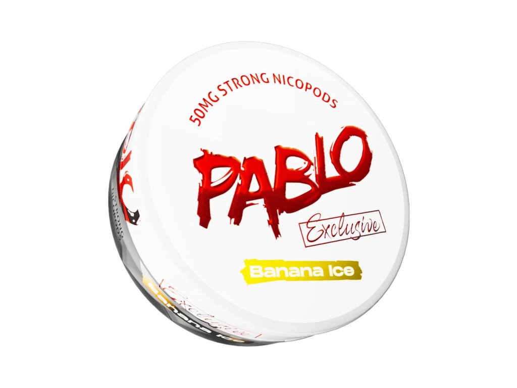 Nikotínové vrecúška PABLO Exclusive Banana Ice prinášajú sladkú chuť banánu s ledovým osviežením a 50 mg nikotínu pre silnú stimuláciu. Diskrétne a praktické použitie.