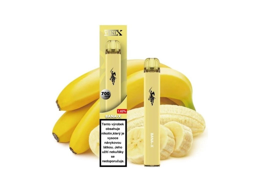 Venix Bana-X je navrhnutá pre milovníkov extrémne výrazných a sladkých krémových chutí, ktorí si chcú vychutnať plnú a bohatú chuť sladkých a krémových banánov zosilnenú pre nekompromisný "X" efekt. Táto e-cigareta poskytuje bohatý, sladký, krémový a výrazne banánový profil s extra intenzitou, ktorý zaisťuje nezabudnuteľnú explóziu sladkej chuti s každým potiahnutím. Tento produkt od Venix s označením -X zaručuje intenzívnu a autentickú chuť, ideálnu kedykoľvek túžite po explózii sladkej chuti a silnom vapovacom zážitku.